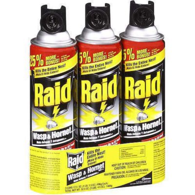 Raid Wasp and Hornet Killer 175 OZ Pack of 3 BEST BANG FOR THE BUCK. Wasp killer and hornet killer sprays up to 22 feet. Raid Wasp Hornet Killer allows you to spray up to 22 feet killing the entire nest.